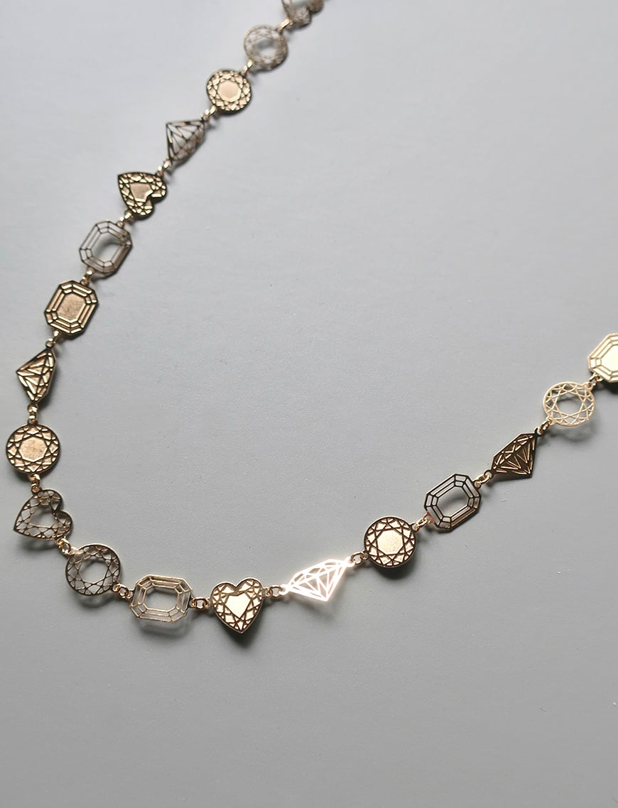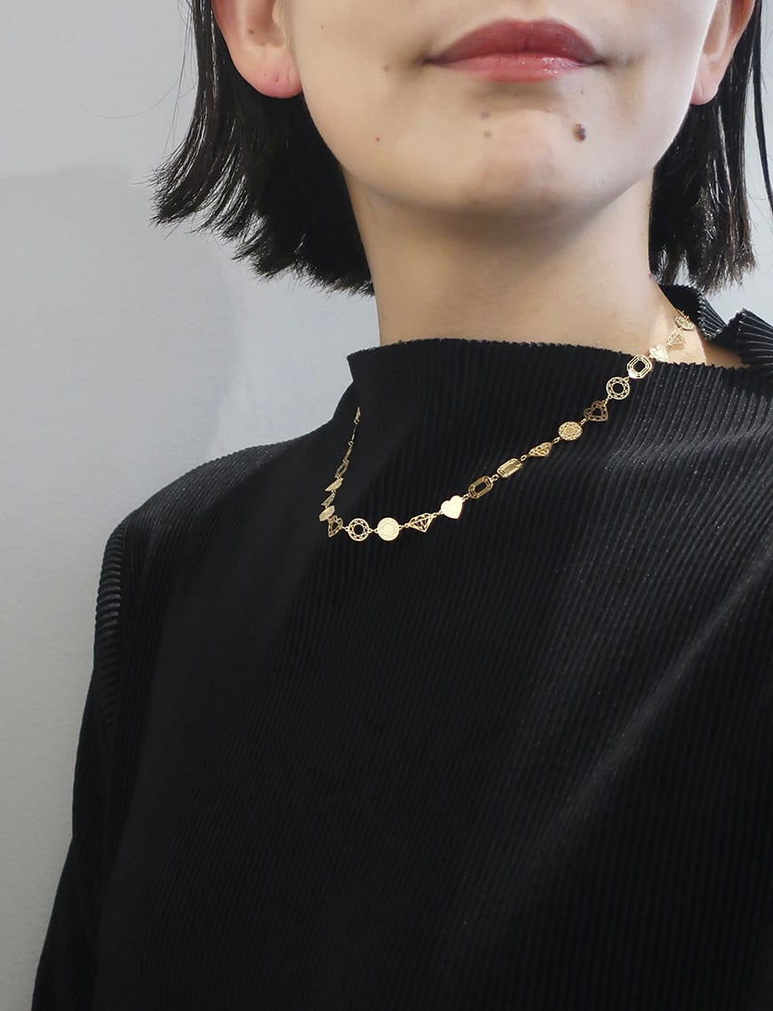 エタニティー[eternity]は英語で「永遠」を意味します。様々なカットの宝石が切れ目なく続くネックレスは、2010年にyielのアクセサリーラインを発表した時に誕生したファーストシリーズ。フラットな面が動くたびにキラキラと光を反射し、存在感を放ちます。着け心地はとても軽やかで、着けているのを忘れてしまうほど。宝石を愛する方への贈り物としてもぴったりです。